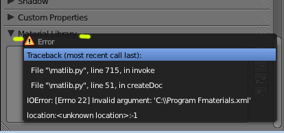 El panel si lo crea bien, pero al intentar guardar el material me sale este error.