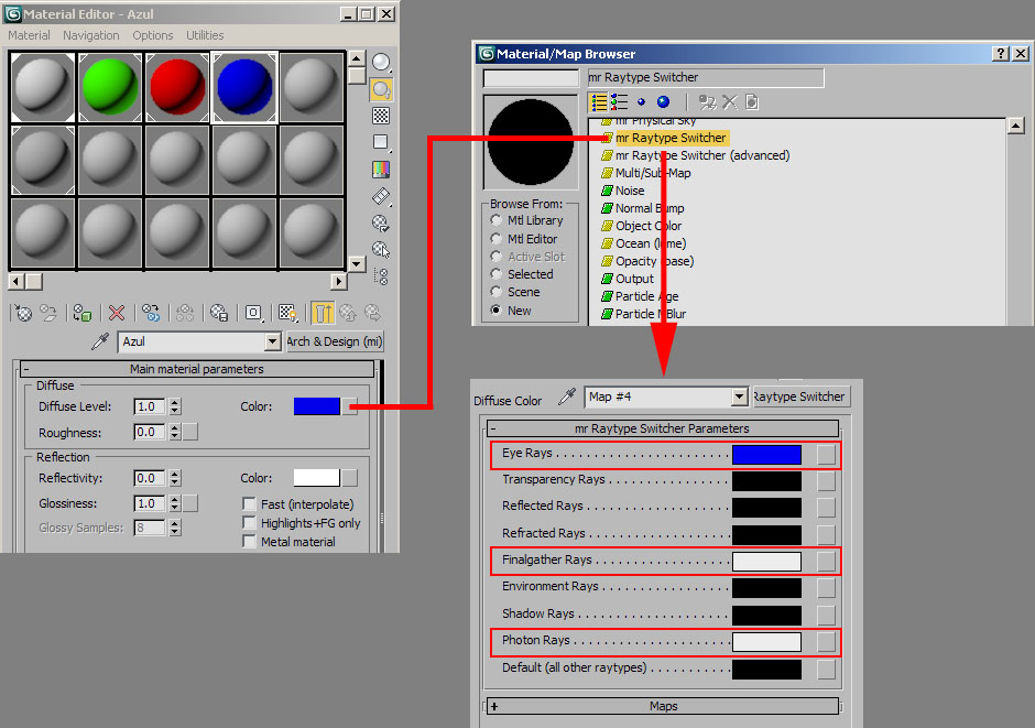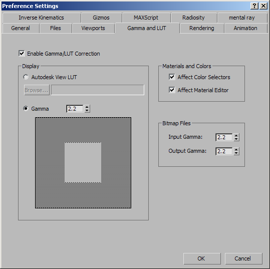 Affect color selector nos permite afectar los colores sólidos también por el gamma y affect material editor nos permite ver la corrección gamma aplicada a los materiales que estemos trabajando en el editor de materiales.