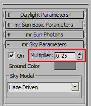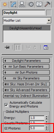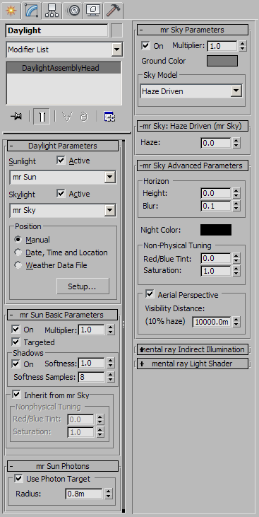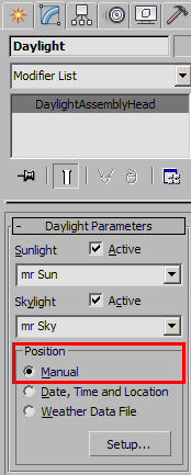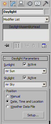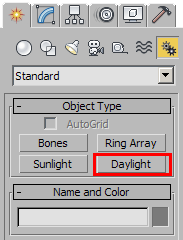 2. Con el Daylight seleccionado nos ubicamos en el panel de modificación de parámetros del Daylight.
