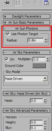 El target y el radio del Daylight, para dirigir los fotones hacia la ventana.