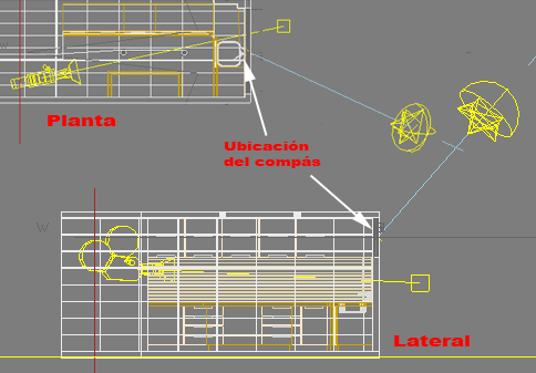 Anteriormente mencioné que, aunque la ubicación del compass no era tan importante, pero que si era útil, ahora vamos a valernos de la posición del compás, cuando se disparan los fotones desde un emisor como el Daylight estos se proyectan sobre la superficie de los objetos.