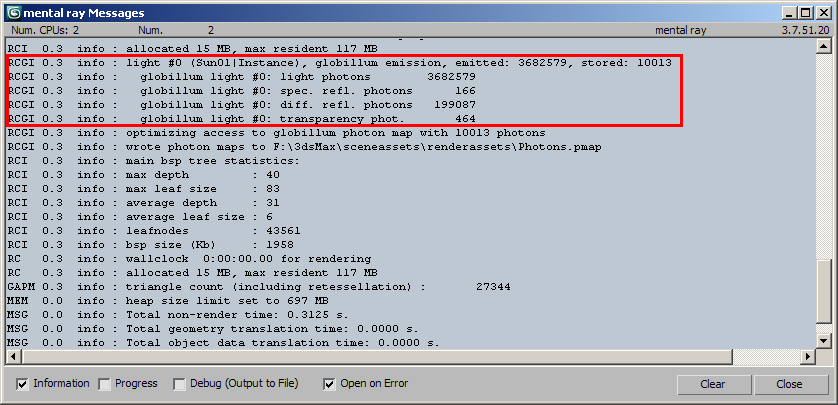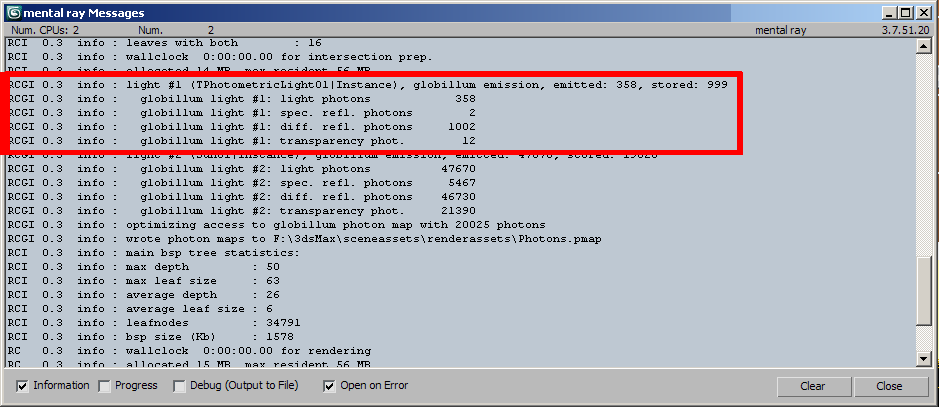 Para lograrlo vamos a valernos de una herramienta que nos permite ver valores generados por el programa, la herramienta es el Mental Ray message Windows.