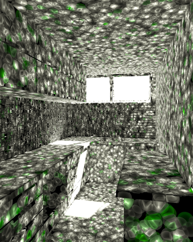 como mencioné anteriormente podemos generar poca densidad y lanzar una gran cantidad de rayos por punto, lo cual solo nos afectaría el valor final de un determinado punto, o podemos generar una densidad muy alta y no necesariamente lanzar una gran cantidad de rayos por cada punto examinado.