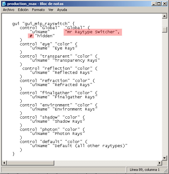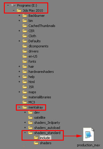 1. Ubicar el archivo production_max.ini que por lo general viene el directorio: 3ds Max 20xx\Mental Ray\shaders_standard\include\.