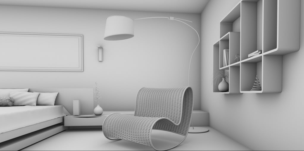 Buenas. Me he puesto con mi primer interior, a ver qué sale. Tengo el modelado más o menos terminado, y ahora estoy con los materiales. Dejo un par de capturas.