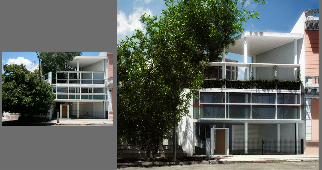Hola, este es un render que hice con el fin de practicar iluminación exterior y darle más realismo en postproducción. Tuve que darle bastante postproducción, en especial para resaltar más las sombras duras de un día soleado, ahora me doy cuenta de que fue así ya que los hice con gamma 2.2 (más claro), que me ayuda bastante con escenas interiores, pero con las exteriores la verdad es que creo que perjudica, de todas maneras, pude corregir eso en Adobe Photoshop y quedo esto, si alguien pudiese orientar más se lo agradecería.