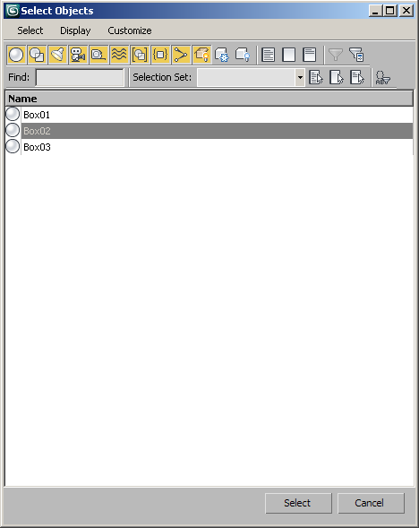 Hola :rc3d: En el editor de materiales seleccione el material, en este caso el Raytrace, luego presionas el octavo botón de la columna derecha del editor, aparece la caja de selección con los objetos a los cuales está aplicado el material, le das select y listo.