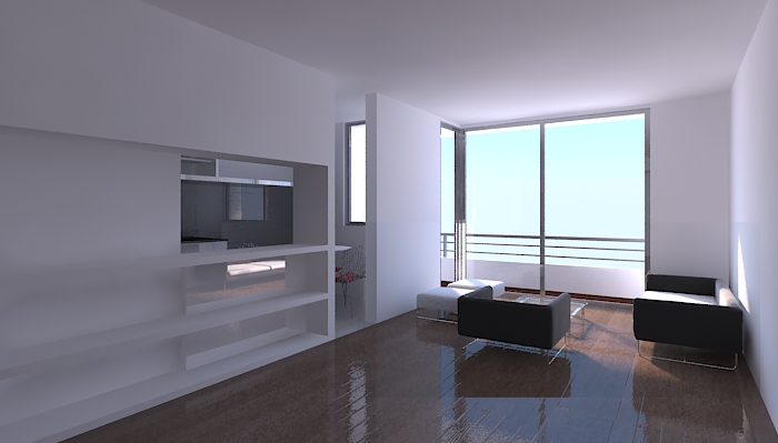 Otra cosa que puedes hacer para que la luz del sol penetre mejor en la estancia es poner una Vray Light en la ventana en modo skylight portal. Esta opción permite redirigir los rayos del sol al interior de la habitación. Con ésta opción no tienes que manejar la intensidad de la luz Vray ni el color ni nada, de hecho, no te deja, se bloquea, y se controla todo a través del sol que hayas puesto.