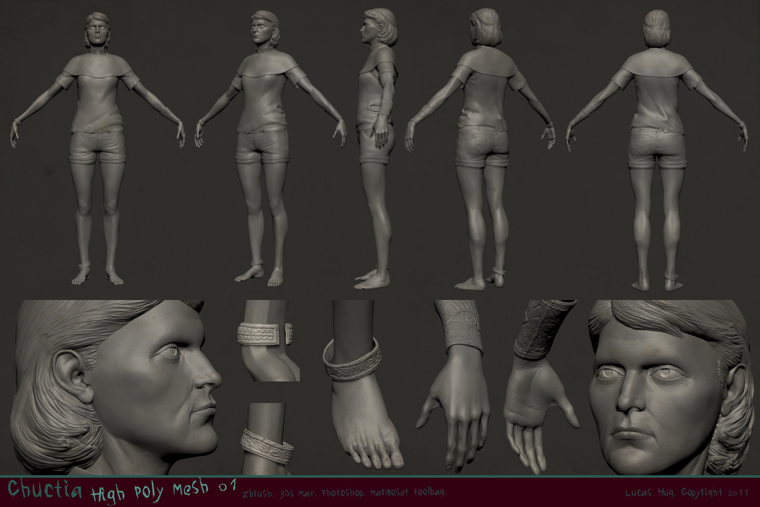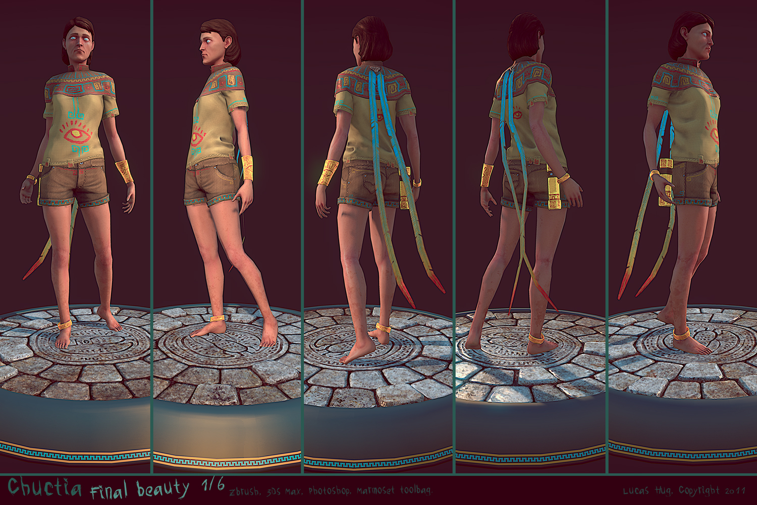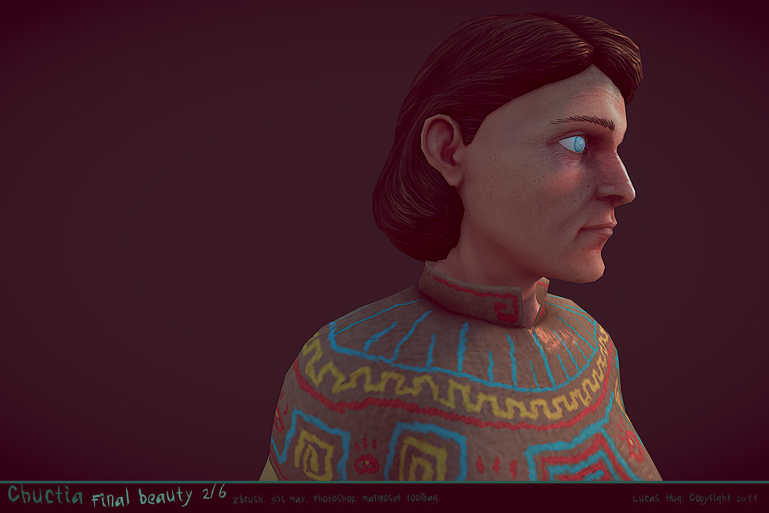 Por lo demás está muy bien, tanto el modelado como las texturas como la postura que la veo muy acertada le pega mucho, enhorabuena por el trabajo, un saludo.