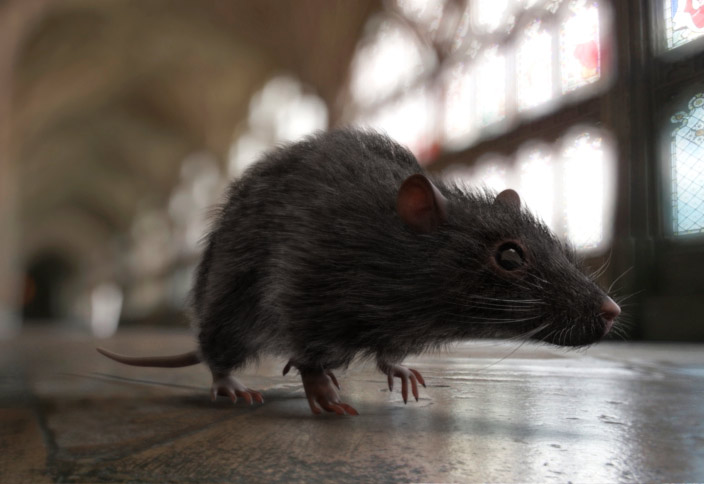 Rata: Texturas, pelos con Hairtrix y otros test con Hair and Fur, materiales, iluminación, render y composición.