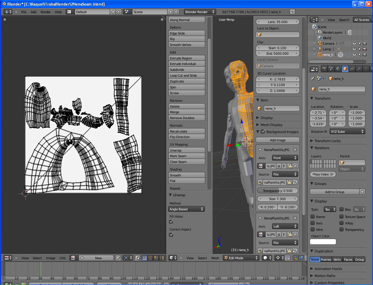 Hola, tengo una duda: en Blender beta 2.54. Cuando hago Unwrap me sale ese fondo blanco partido de la imagen, y no sé si es muy normal, porque la imagen no sale seleccionada, a pesar de que en la pantalla de la derecha si lo está y no hay forma de hacer un bake. Esto antes no me pasaba no sé si habré tocado algo.