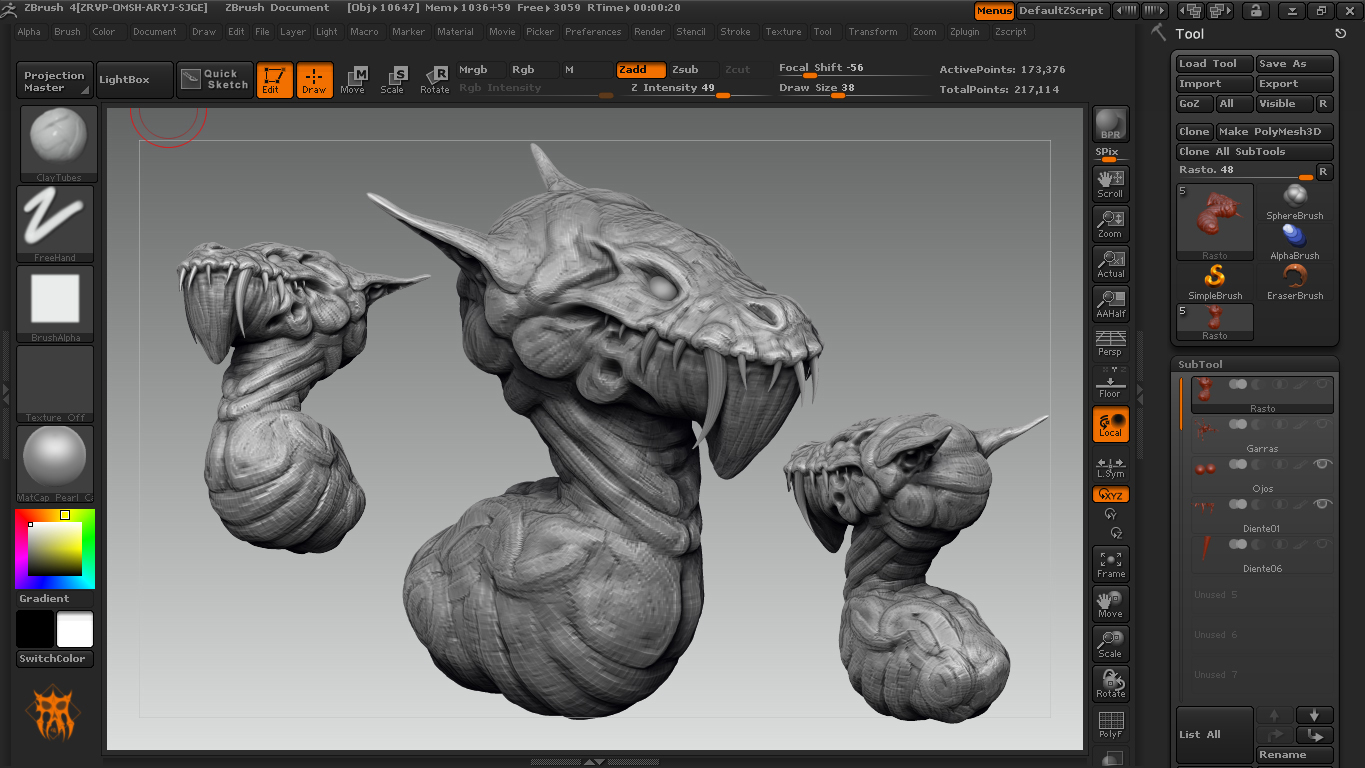 Hola amigos, de nuevo yo con otra criatura en proceso echa en ZBrush. Saludos.