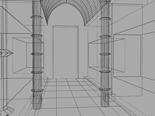 Si, yo también lo veo demasiado, empezando. Solo dos cosas: Las columnas, esos picos que les has hecho deberían ser mucho más suaves, si en lugar de con 3 segmentos los haces con 5 ganara un poco.