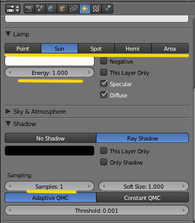 Gracias, aunque si era eso a lo que os referiais ya lo sabía, tengo dos lámparas, una spot con 10 samples y 3.000 de energy y otra Hemi con 0.100 de energy.