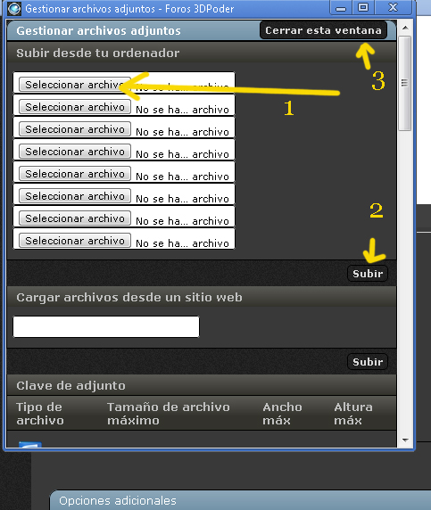 Responder tema. Ir a avanzado. Gestionar archivos adjuntos. Seleccionar archivo subir, y cuando ya a subido cerrar esta ventana.