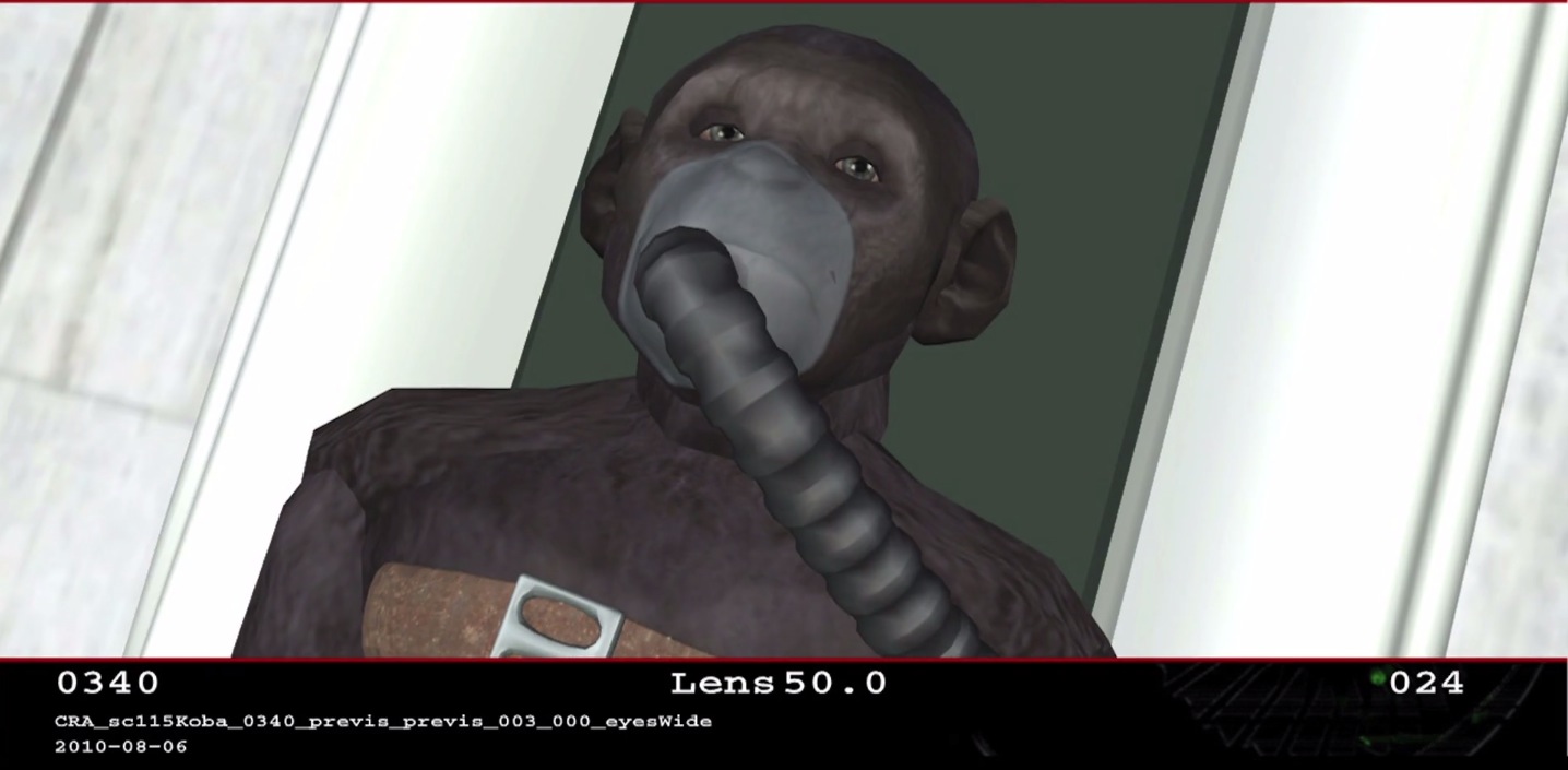 Image engine ha proporcionado estos previs de escenas rodadas mostrando alguna información técnica, como la lente de la cámara y detalles de tamaño establecidos para el origen del planeta de los simios.