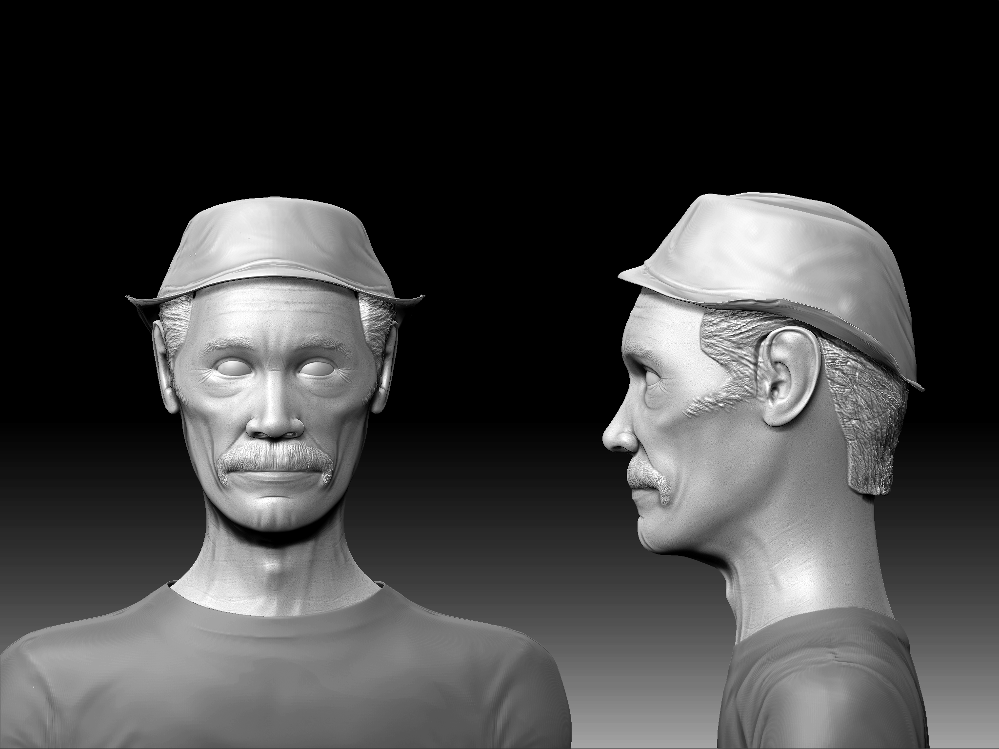 Se ve bien, intenta corregir también sobre todo la zona de los ojos ya que parece no tener músculos ni grasa alrededor, se ven muy planos sobre todo los párpados necesitan más volumen, también a los lados de los ojos has ensanchado el cráneo demasiado y las orejas se ven muy pegadas a la cabeza y además deberían de estar mucho más abajo comenzando más o menos a la altura de los orificos de la nariz y terminando a la altura de los ojos, ya mostraras más avances, un saludo.