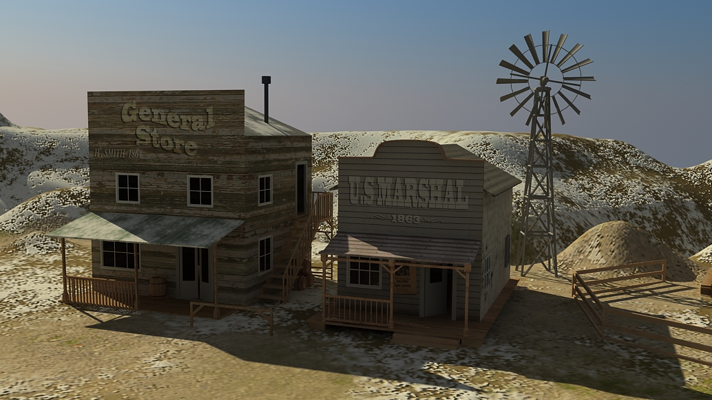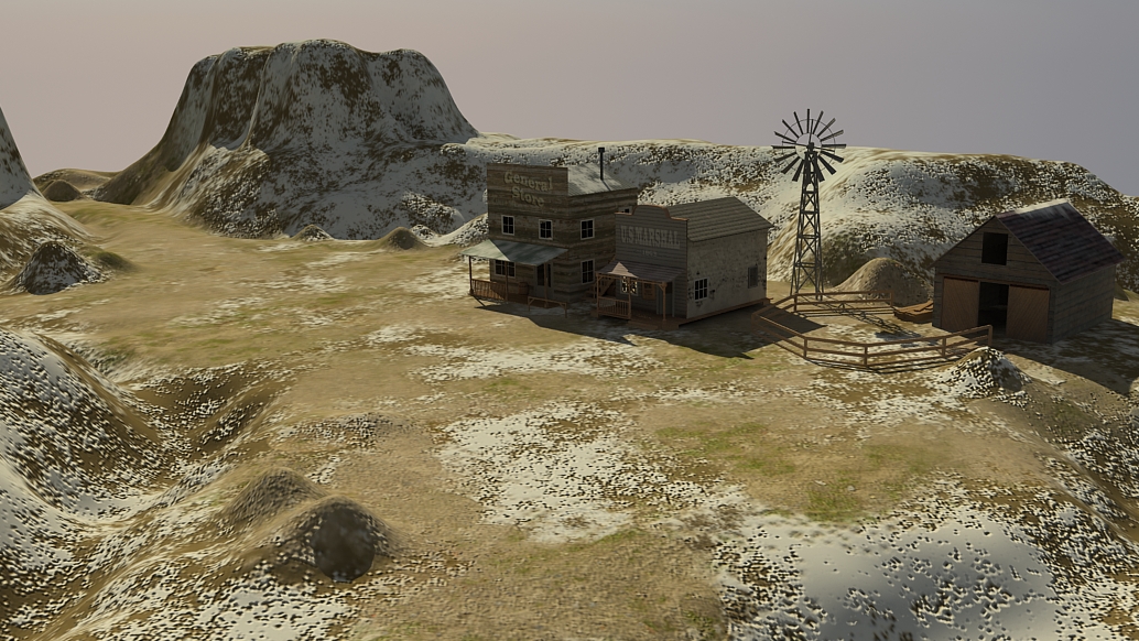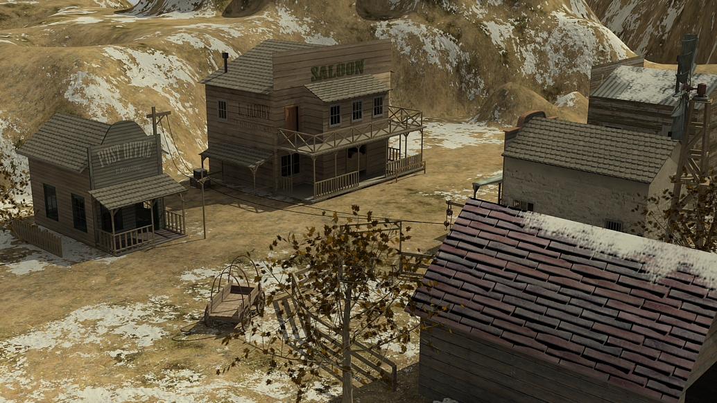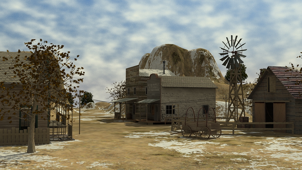 Estoy con zay, el suelo es lo que desmerece un poco, la textura vamos, la forma está muy bien. Tampoco me cuadra esa nieve, lo suyo, siendo del oeste, es darle un tono más arenoso, calor a cascoporro y tal, pero nieve no pega mucho, por el concepto general que se tiene del western americano.