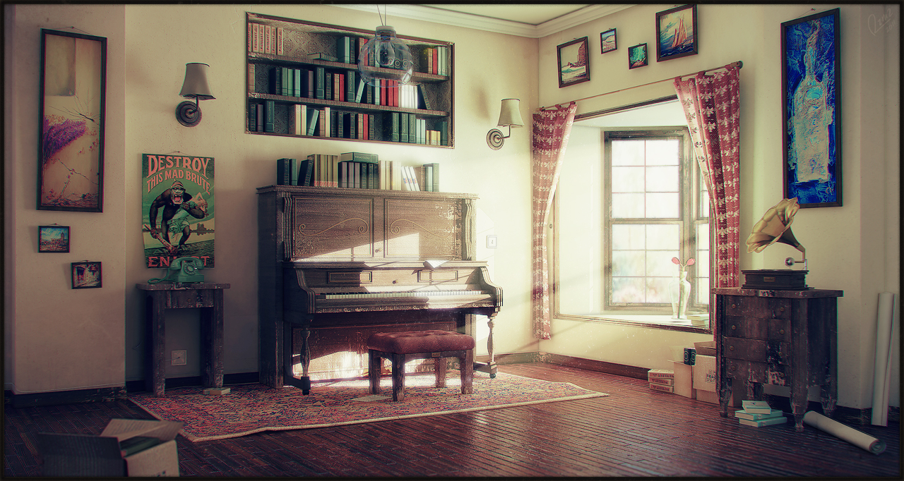 Muy bueno, yo tambíén me uno a lo del cordón en las cortinas y otra cosa más, quizás el Bump del suelo es demasiado excesivo.
