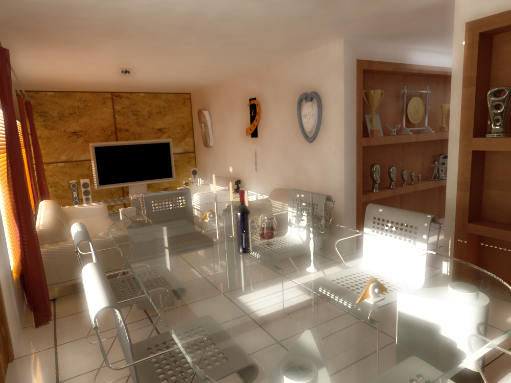 Hola chicos, rebuscando un poco en mis cosuillas guardadas, encontré algunas pruebas que hice con iluminación de Vray tanto para interior como para exterior, espero que os guste y se aceptan críticas, las hice hace un par de años y no se como no las había expuesto antes por aquí, la idea del interior es de un apartamento que tiene un familiar que me gustó mucho.