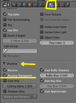 O sea, todo lo que este por detrás de un cristal debe de tener en material > shadow > la recepción de esas transparencias.