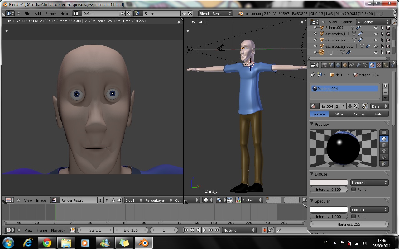 Si bueno mi trabajo va sobre el 3d aplicado en el cine y de práctica lo que quería decir era lo que tú dices al principio quería hacer un corto, pero luego me di cuenta que tenía que mejorar y bueno pues al final decidí hacer eso hacer ejemplos de animación y si me daba tiempo hacer una integración en entorno real bueno este verano he leído cosas para mejorar en cuanto al modelado y animación y ahora estoy leyendo Blender 2.5 character animation Cokbok a ver si me va bien el trabajo, aunque mi tutor pasa de mi u, por cierto, el personajetodavía no está acabado tengo mejorar cosas en Sculpt Mode, y tú ahora haces animación o algo de 3d?