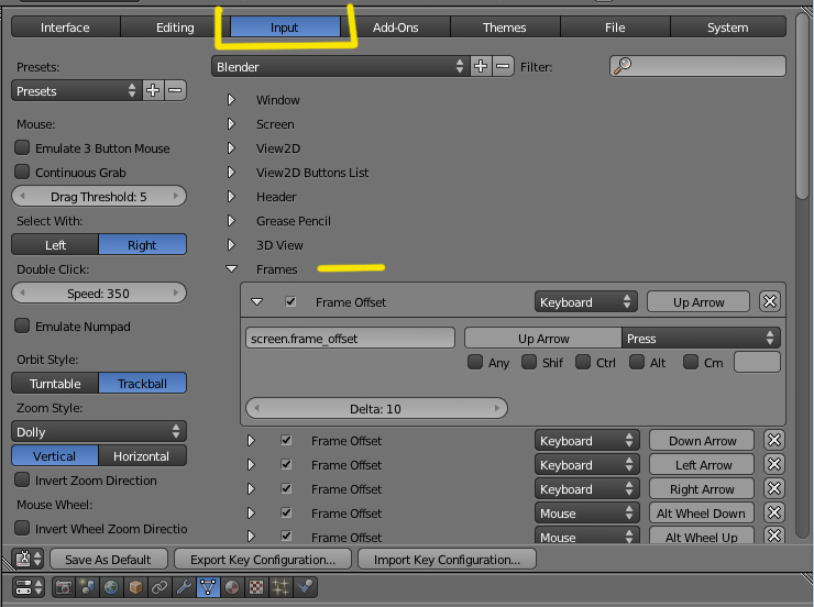 Desde hace unos días, y no sé muy bien por qué, Blender no me deja avanzar o retroceder los frames de 10 en 10 al pulsar las flechas arriba y abajo de las teclas de dirección. ¿es algún cambio de la nueva versión? Ahora da saltos entre keys del timeline, y yo personalmente uso bastante lo de ir de 10 en 10. He cargado los las opciones de fabrica y nada.