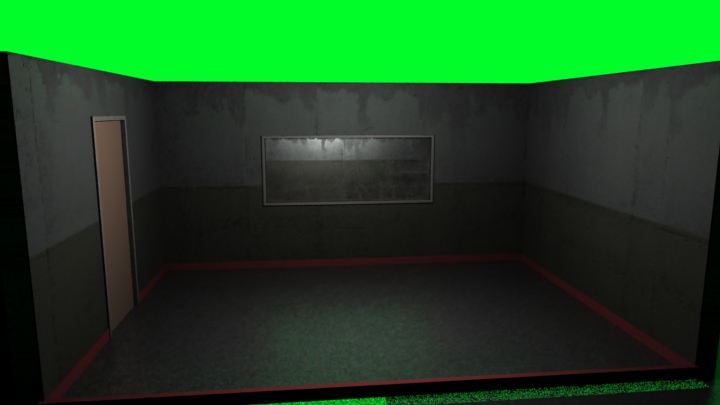 Buenas tardes. Estoy modelando una sala de interrogatorio para una animación que quiero hacer. Como en toda sala de estas hay un espejo, yo quiero que la pared que está paralela al objeto no se vea en el render, pero si en el reflejo del espejo.