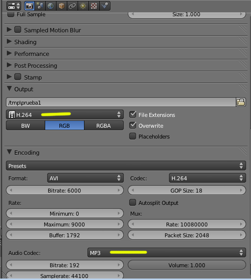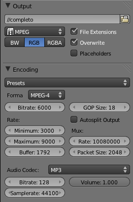 Yo suelo ponerlo así y me va bien. No me comprime demasiado, pero ya me va bien porque suelo sacar el render a mucha calidad y luego si tengo que comprimir el video lo hago de forma externa.