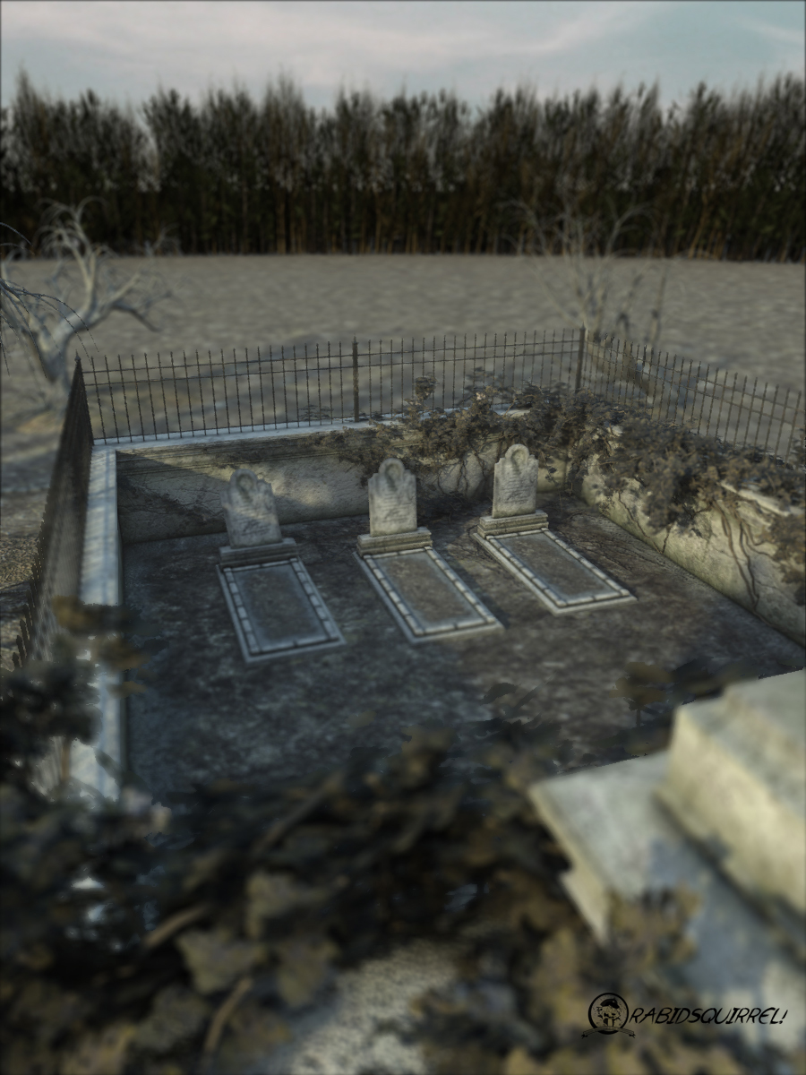 No esta nada mal, a mi se me antoja como el escenario de introducción de un juego en plan apocalipsis zombie. Atrapado en el cementerio mientras lo bichos se acercan desde el bosque. Y en de repente los tienes dentro. Uh.