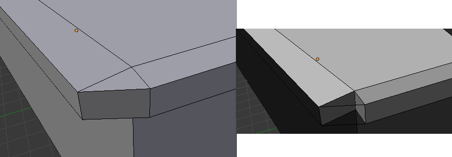En tu caso, casi seguro, que al hacer las caras de la esquina, te han salido las tres invertidas, pero si borras las caras internas que sobran, ya verás que luego puedes recalcular las normales bien.