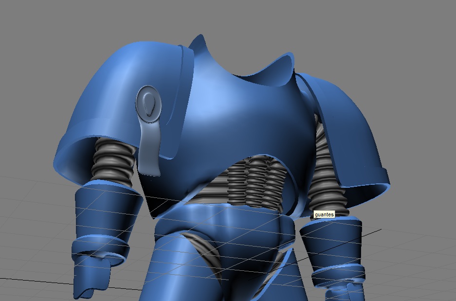 Por cierto, lo que hace de brazos, piernas y torso debajo de la armadura es momentáneo. La pechera seguramente se la modele otra vez, aunque si me pongo lo modelaría todo de nuevo, pero no lo haré, esto más que nada me lo tomo como un ejercicio rápido para pillar soltura.