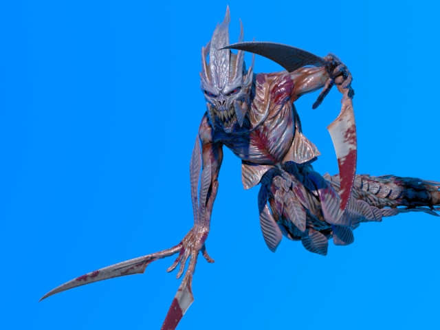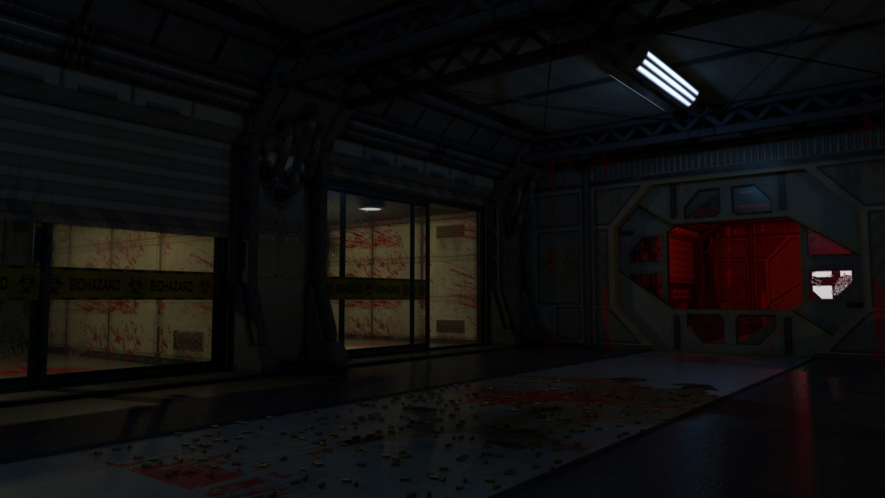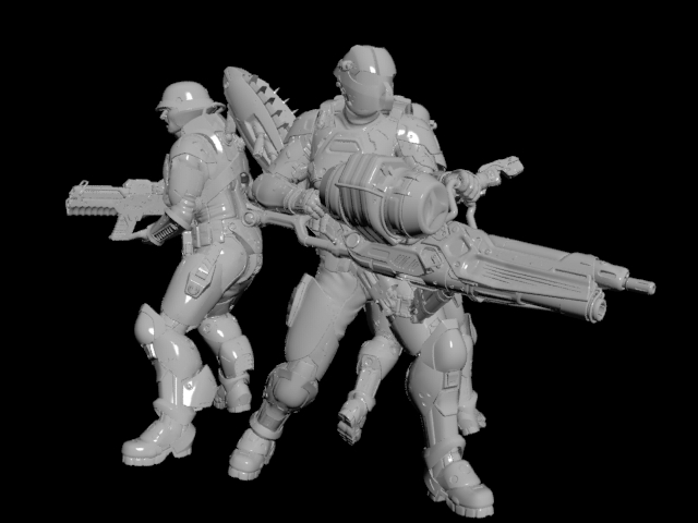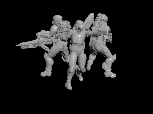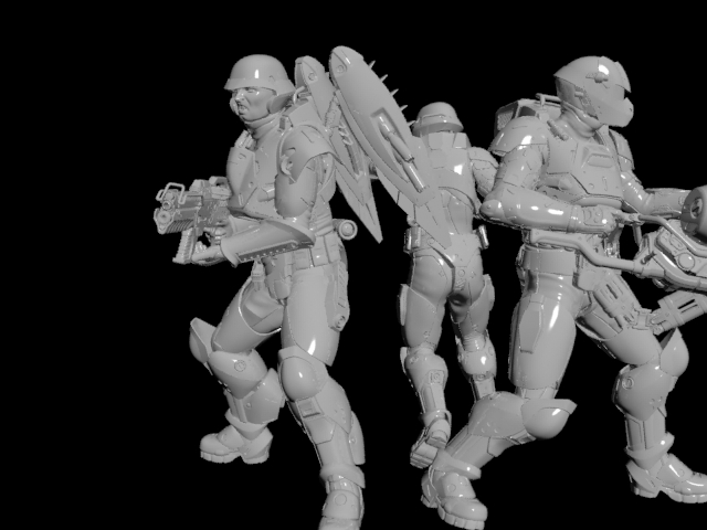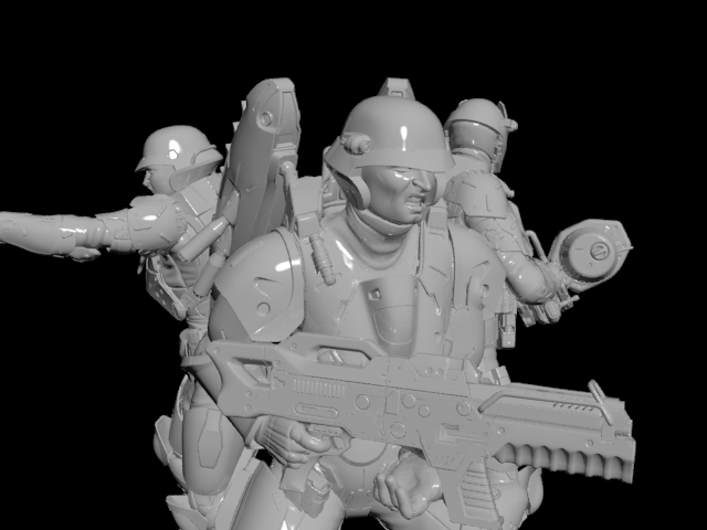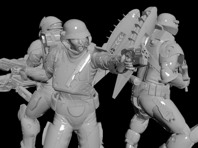 Es una escena inspirada en Doom, con 3 marines descargando todo lo que tienen contra unos demonios en una base espacial. Para acabarlo a tiempo hubo que sacar la tarjeta y comprar algunos modelos de Daz, pero los materiales y las luces las estoy trabajando yo, ya les iré poniendo más avances.