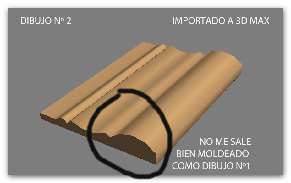 Desde luego las preguntas que hacéis y mostrando los ejemplos que mostráis, son de traca. Pon el antes y el después, di lo que hiciste y lo que te ha salido en texto y con imágenes. Si sólo enseñas eso, pues te van responder dos idiotas como nosotros dos diciéndote lo que debes de preguntar. Qué es eso, eso ni siquiera es un objeto 3d, porque le llamas objeto 3d a un dibujo plano, tampoco entiendo lo que es un dibujo moldeado, luego dices que elo pasas al 3ds Max, pero no dices ni como, ni en qué formato, por arte de birli-birlok o directamente por carta. Anda repite de nuevo todo y bien explicado, como nos enseñaban de pequeñitos hace muchos años a los que no nos ha castigado la logse, porque veo que eres de Valladolid y eso no te salva. Un saludo.