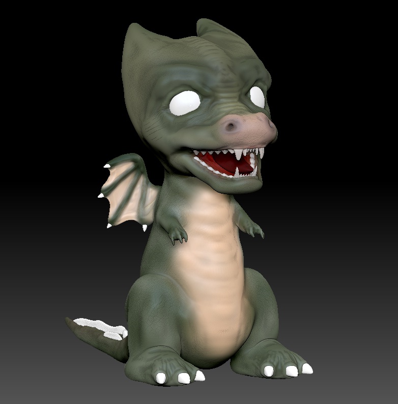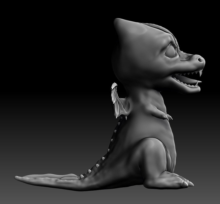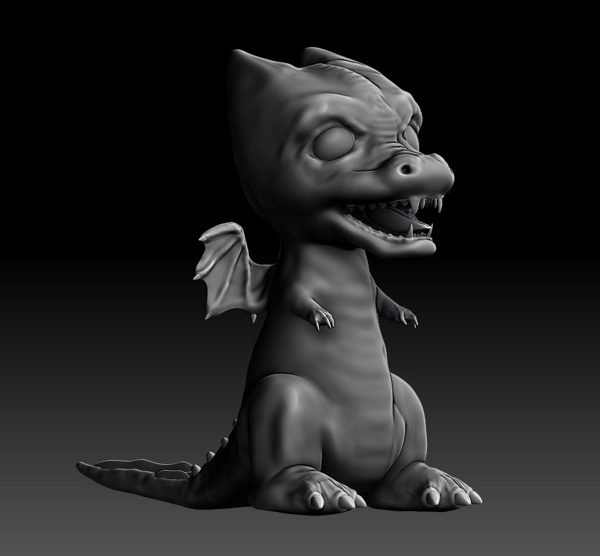 Buenas. Va quedando gracioso el dragón. Supongo que todavía le quieres meter más caña, los cuernos, por ejemplo, creo que se pueden mejorar dándole volumen a la base para que se note que salen de la piel, y la parte del torso por adelante quedaría mejor si marcaras más los pliegues, con Claytubes, para que no quede tan redondeado, en general, aunque sea estilo cartoon, el modelo pide más detalle. Me gusta cómo se ven las alas, tengo ganas de ver cómo sigue el modelo, dale.