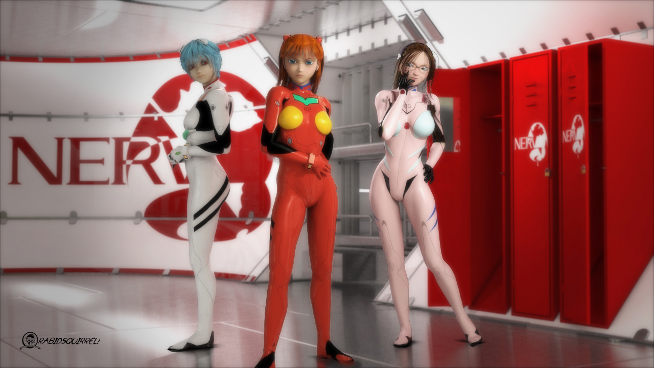 Aquí presento un trabajo que hice hace poco. Asuka, Mari y Rei, de evangelion. Mención especial a evileliot por tener la amabilidad de permitirme usar sus texturas.