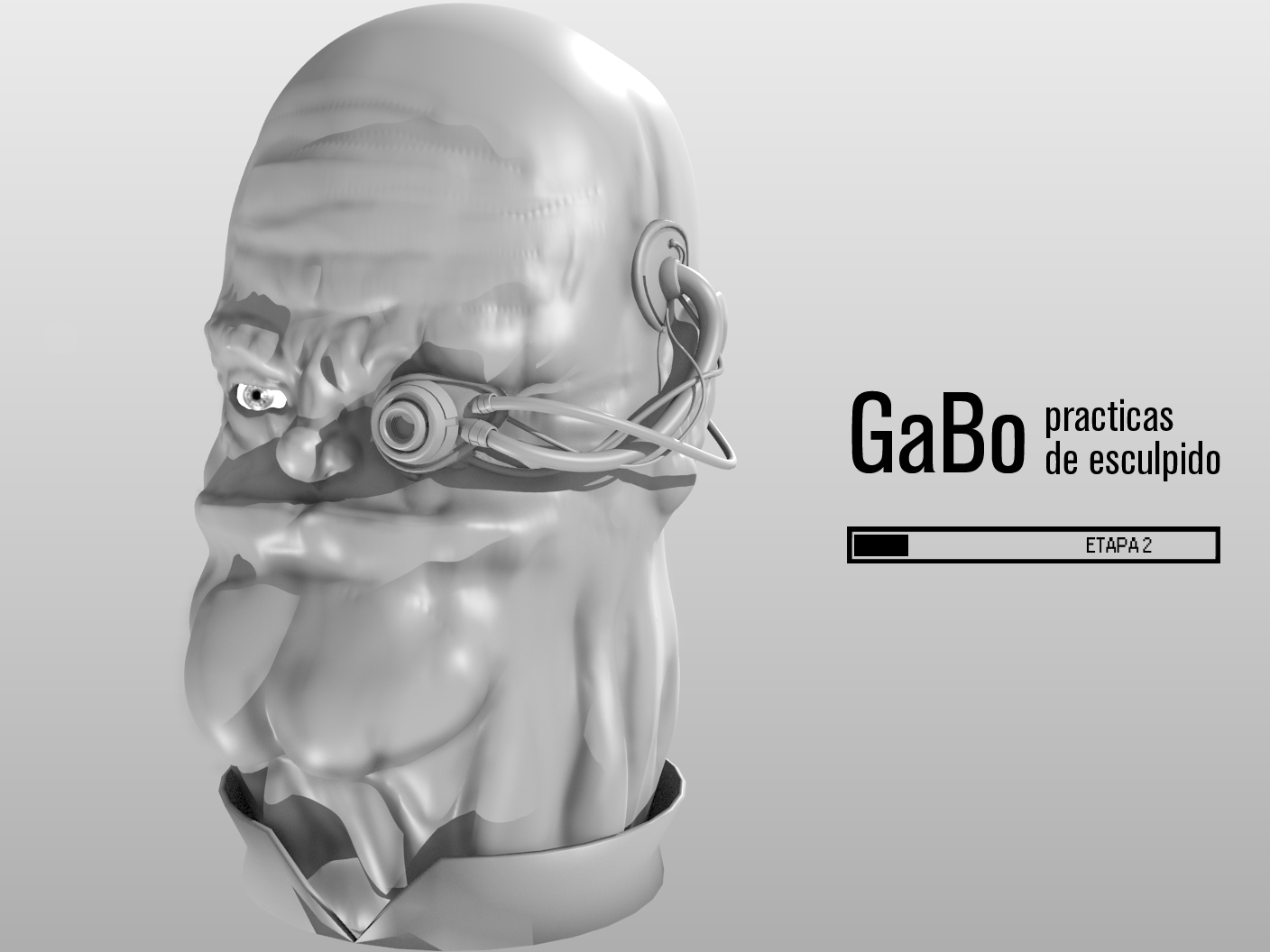 Está todo modelado con la herramienta Sculpt de Blender, esta es la primera etapa, por lo general las etapas las divido en días para ir ejercitando velocidad, aún hay muchas cosas que no defino, si voy a contextualizar de alguna forma el rostro o el tipo de material, aún no sé si me voy animar a texturizarlo, pero todo eso lo iré resolviendo entre la semana.