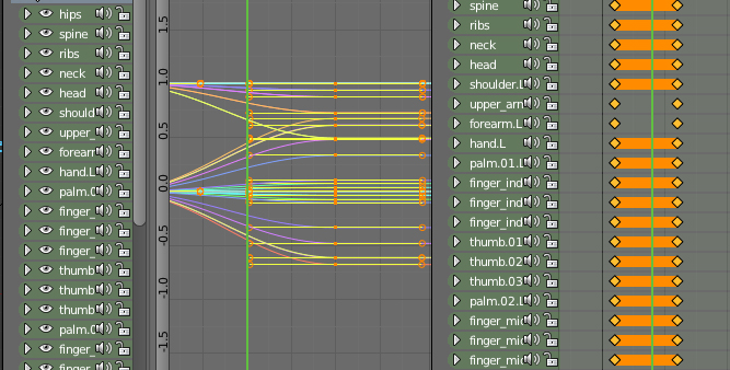 Vale, probaré lo que dices. Lo que pasa es que soy un poco zangano, y lo del mirror me parece escandalosamente bueno. Lo que estoy intentando es copiar los movimientos de la parte izquierda a la derecha, con mirror (Control + shift+v). Las hago desde la ventana 3d, porque no he encontrado forma en el Graph editor. Eso sí, por tocar, que no quede. También le daré leña al dopeshet. A sus pies.