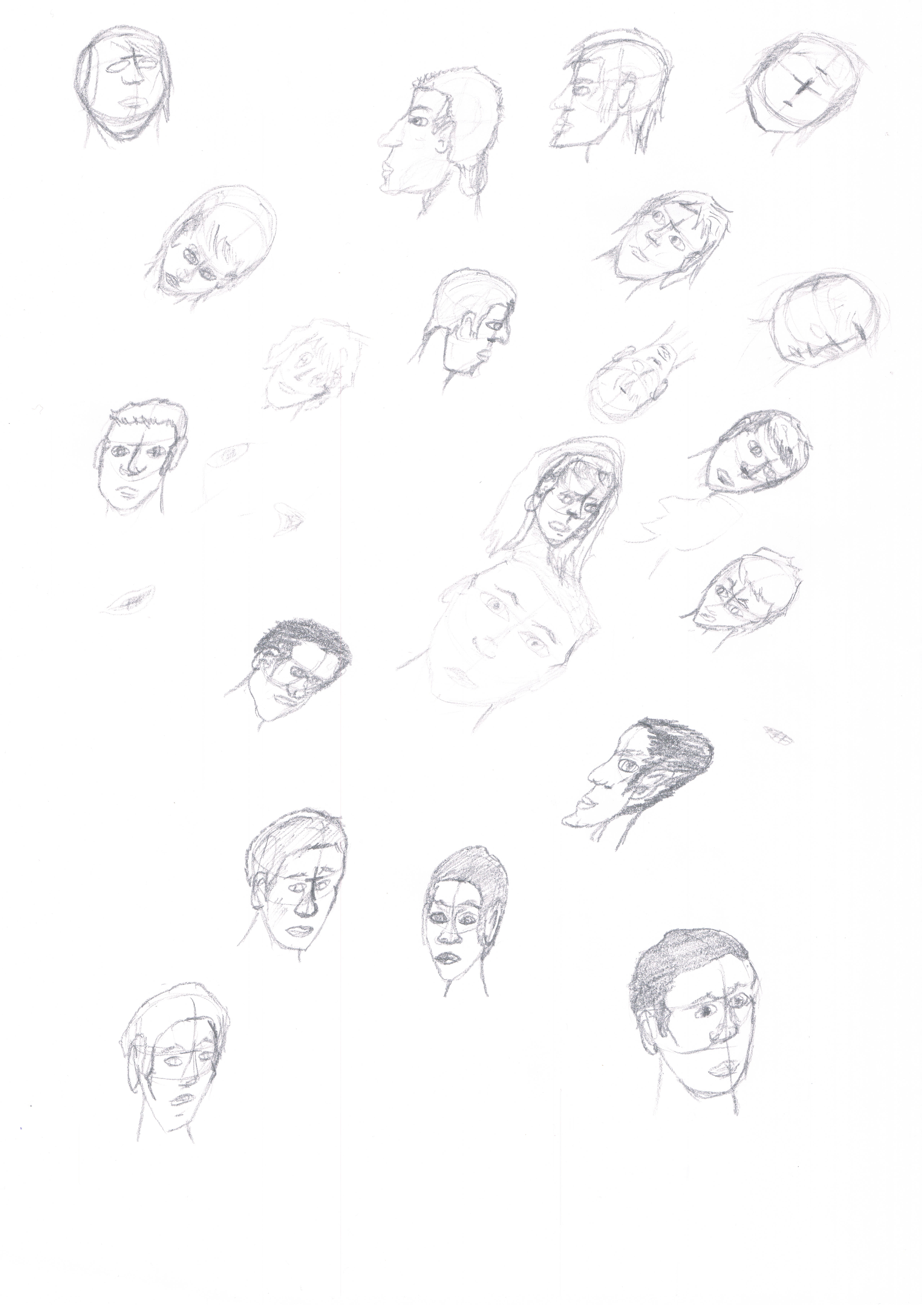 He estado viendo la página esa y el libro de Andrew loomis sobre dibujar cabezas (también me he leído el mensaje de aprendiendo cosas) y nada, aquí dejo varios bocetos de cabezas, solo llevo una cuarta parte del libro de loomis leído.