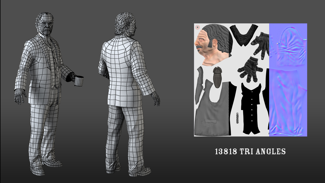 Hola gente, este es mi último trabajo personal, el malo (bueno para mi) de la estupenda serie deadwod, es un lowpoly que tiene 3 mapas (Diffuse, Specular y normal) espero haber conseguido un parecido razonable, un saludo.