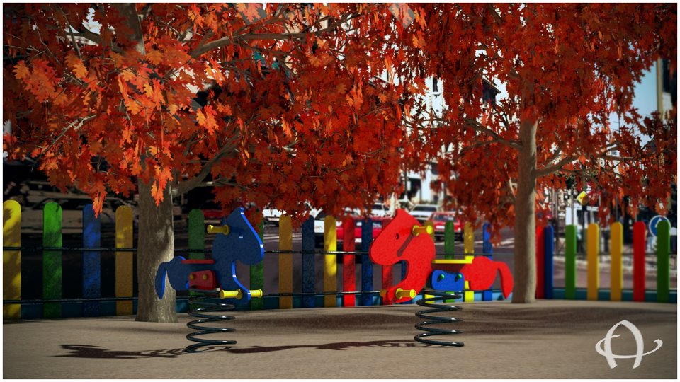Tengo pesado hacer una escena otoñal, sí, con sus hojas caídas y los árboles con pocas hojas, el aspecto del suelo tendrá el típico rastro de cuando pasan el rastrillos para recoger las hojas del suelo, en el fondo pondré unos edificios que creé hace un tiempo, y por supuesto niños jugando por el parque. Después de todo esto veremos cómo queda esta escena, que le falta un tobogán, columpios. Gracias ganaedesign por pasarte por mi blog. Un saludo.