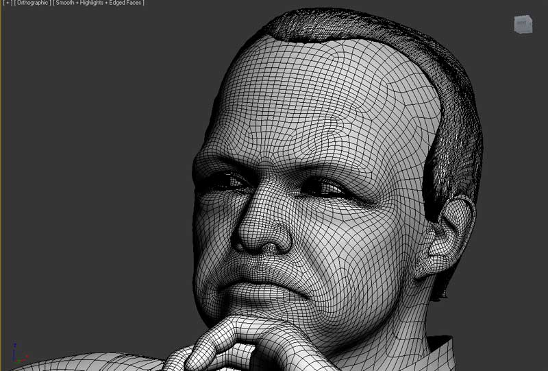 A mí me parece que está muy bien, la técnica de iluminación no sé si la has hecho basado en la luz de la oficina de vito en la película (imagino que el contraste es por eso). Personalmente lo único que le veo es el detalle del pelo, el resto está muy bien.