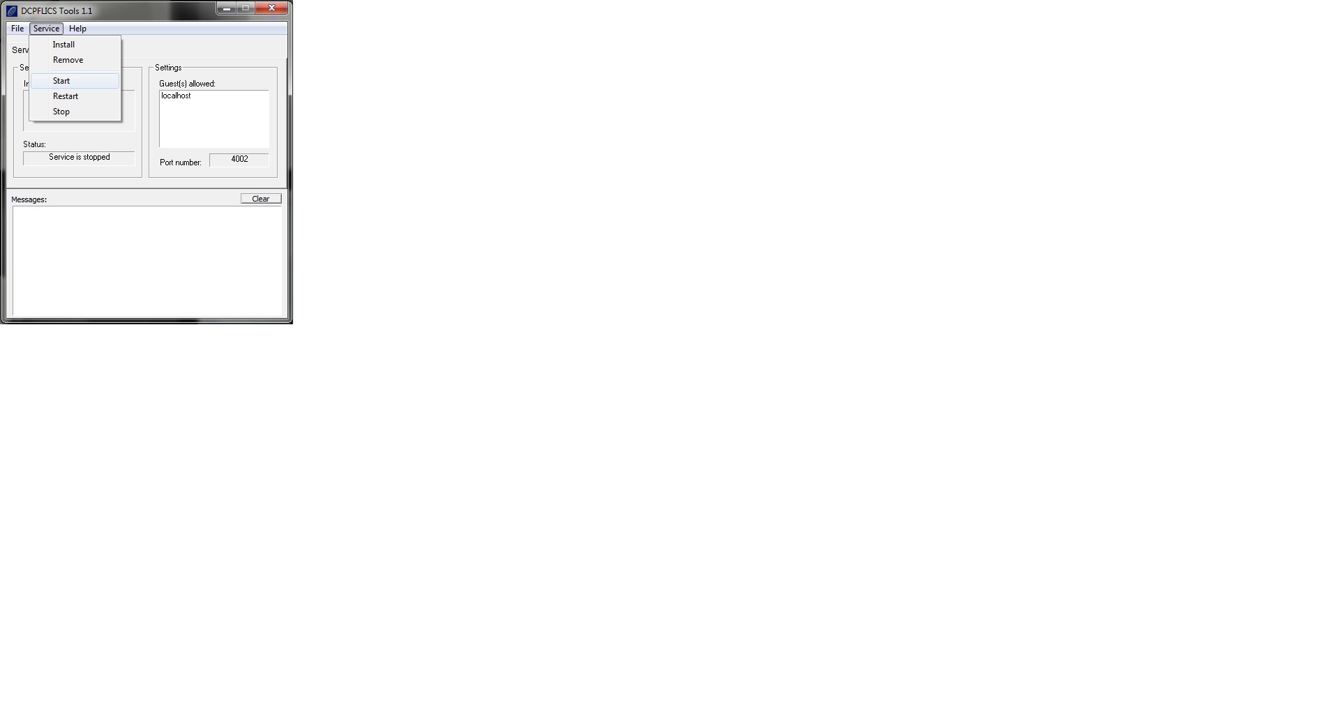 En la ayuda de dcpflics. Error connecting todo the socket(): This error generally means that the dcpflics server and service are not started. To correct this error, make sure you have administrative privileges on your computer. Next, launch the dcpflics_tols, exe file (from within your c:\programa files\dcpflics folder), then from the services dropdown menú, choose install, then start. This should install and start the dcpflics service.