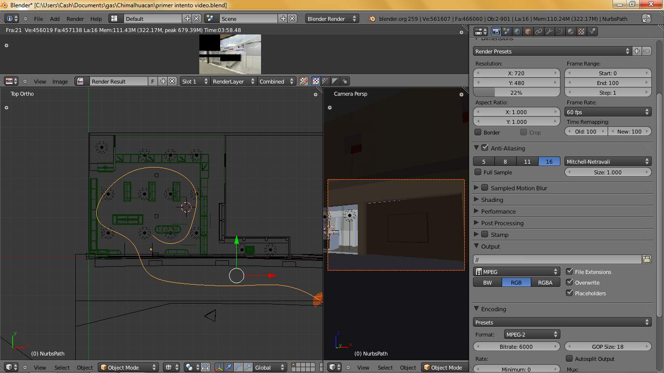 Anime una cámara en Blender con el parent a un Path, pero solo me da 100 frames no sé cómo hacer que dure más la animación.