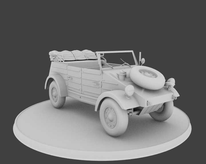 Os presento el trabajo en que estoy trabajando, un kubekwagen type 82, un coche alemán de la segunda guerra mundial, en este vídeo podéis ver el proceso completo de modelado, he ido tirando renders de los distintos pasos del modelado y después los he unido en un vídeo.