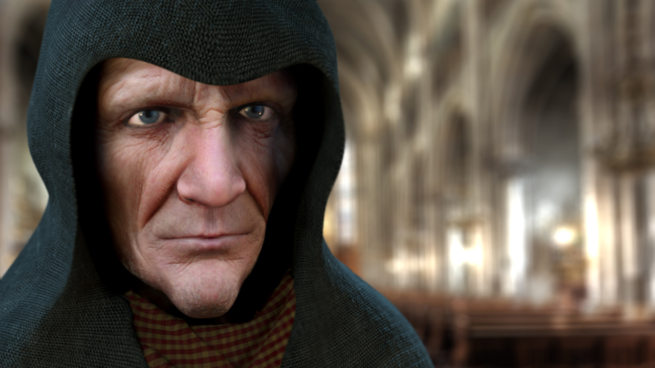 Y ahora que veo otra vez el render, la imagen del fondo con desenfoque está muy lograda, felicidades(además encaja a la perfección con el personaje), pero bájale un poco el contraste, porque el color es parecido al del monje y lucha por la atención del espectador. Si le bajas un poco el contraste8 no mucho que se te oscurece) lograras un efecto negativo que se dirige al monje. Bueno más que un efecto negativo es por destaque del color ¿no? Vaya, bueno de todos modos esto es según gustos.