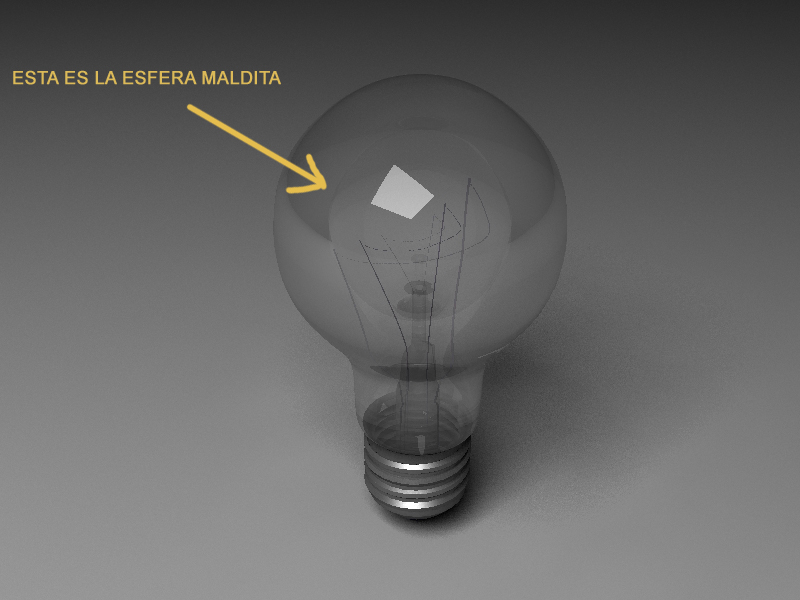 el primero es el siguiente: el cristal de la bombilla refleja una curiosa esfera en el medio, que en teoría se forma por los reflejos entre sí. Pero es que mirando una bombilla real, no veo ese reflejo. He probado muchos valores de reflexión/refracción, pero no consigo que se solucioné:.