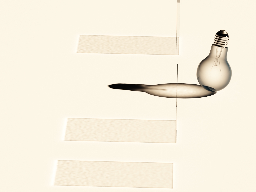 Hola, sigo con la bombilla dichosa. En la escena están la bombilla y tres cristales rectangulares con distinto grosor. Como se puede ver, la sombra que proyectan en el suelo, parece como si tuviese un noise añadido. Cada cristal también tiene un valor IOR diferente (y he probado con muchos más), pero no desaparece ese ruido. La única forma de hacer que desaparezca un poco es bajando las reflexiones, pero.