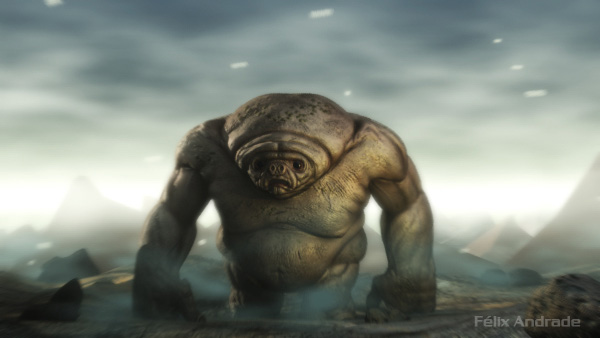 Genial, a mí me encanto, es adorable y temible. Una cosa, en animación: en el movimiento de brazo tendría que haber más pesadez, un movimiento lento para subirlo y muy rápido para dejarlo caer, pierna derecha del personaje no se entiende muy bien, parece como si su grasa baila por si misma.