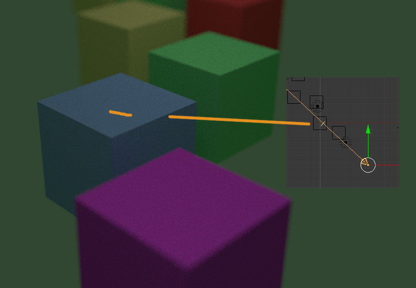 En Cycles. El límites solo vale para ver la señal de dónde enfoca la cámara. Si quieres seleccionar un objeto hazlo desde focus y selecciona el objeto desde el cubo (tienen que salir todos los objetos de la escena).